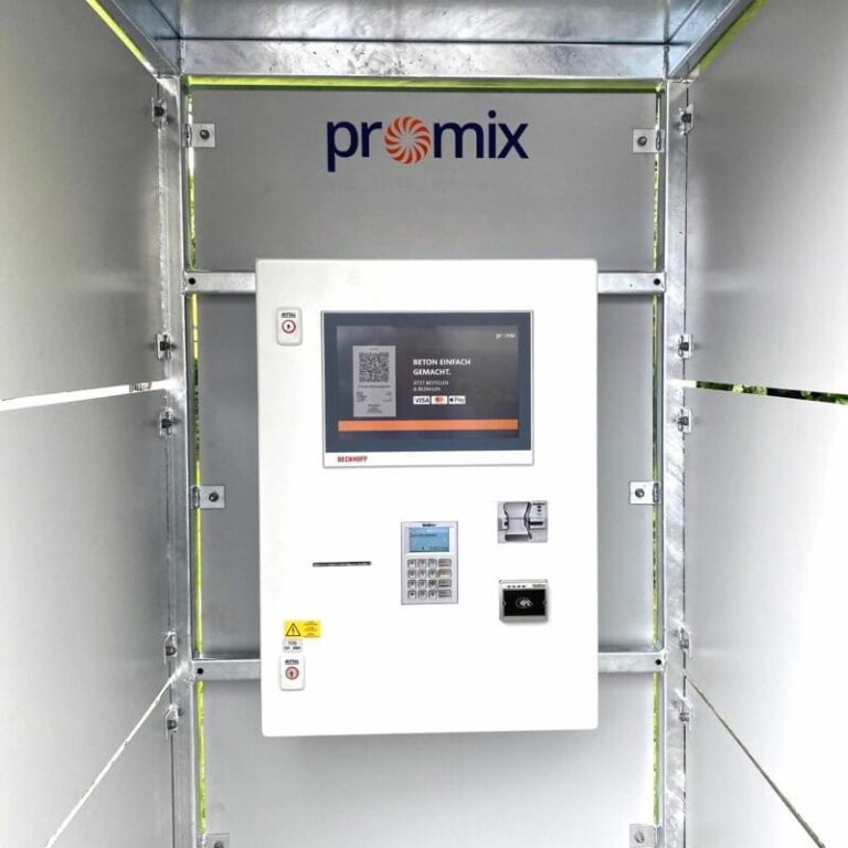 Das promix SB-Bezahlterminal ist sowohl für die Betontankstelle als auch für den Schüttgutautomaten geeignet und lässt sich ergänzend zu beiden Anlagen installieren.